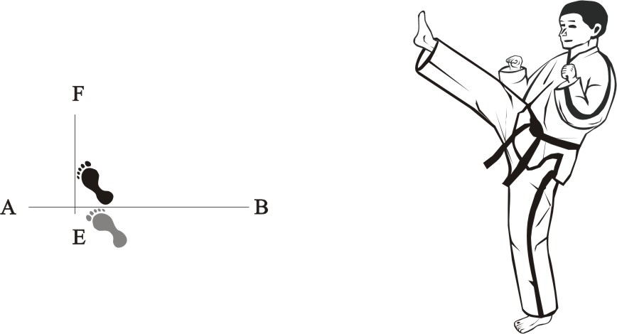 …… and turn left on the left foot and make a right side-kick high towards F.