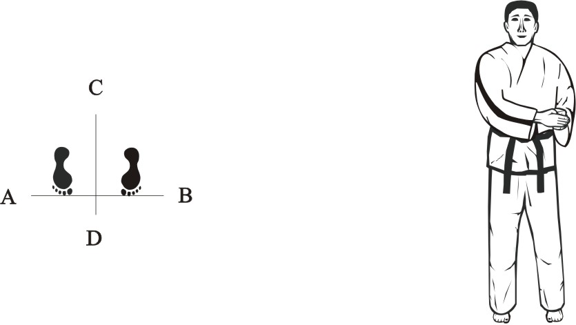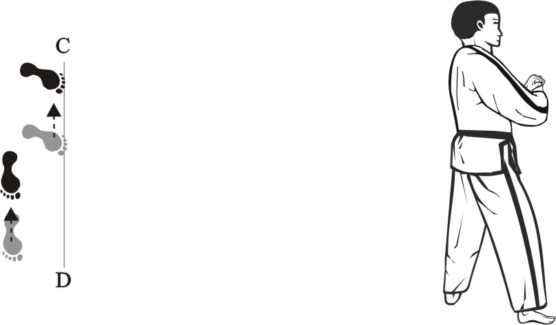 Place the right foot next to the left foot, form a parallel stance towards D and assume the ready posture Chumby-H.