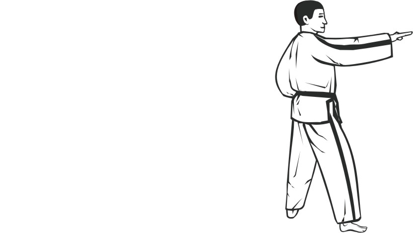 …….., land in a right L-stance towards D and make a knifehand guarding-block middle.