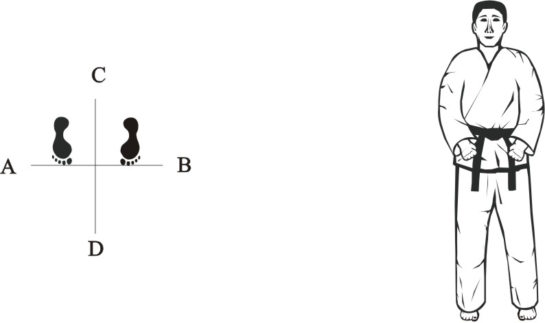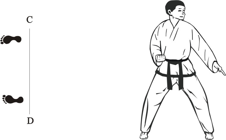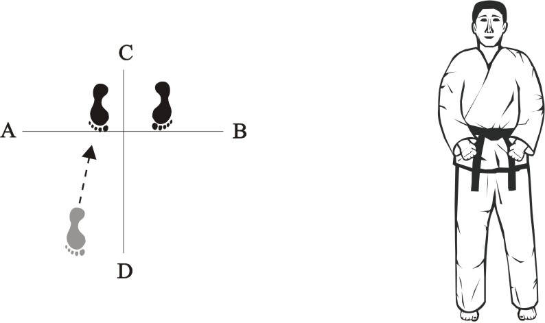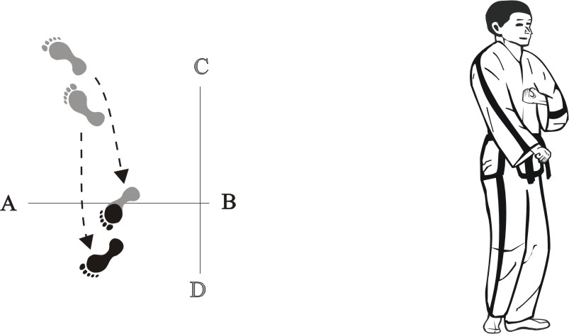 Place the right foot next to the left foot, form a parallel stance towards D and assume the ready position Chumby.
