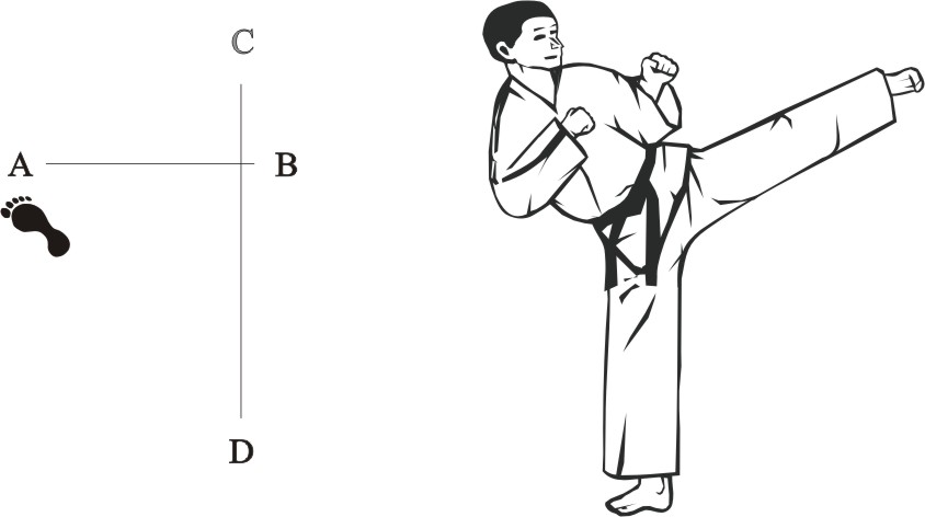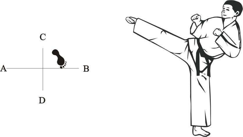…… and make a left side-kick with the ball of the foot middle towards C.