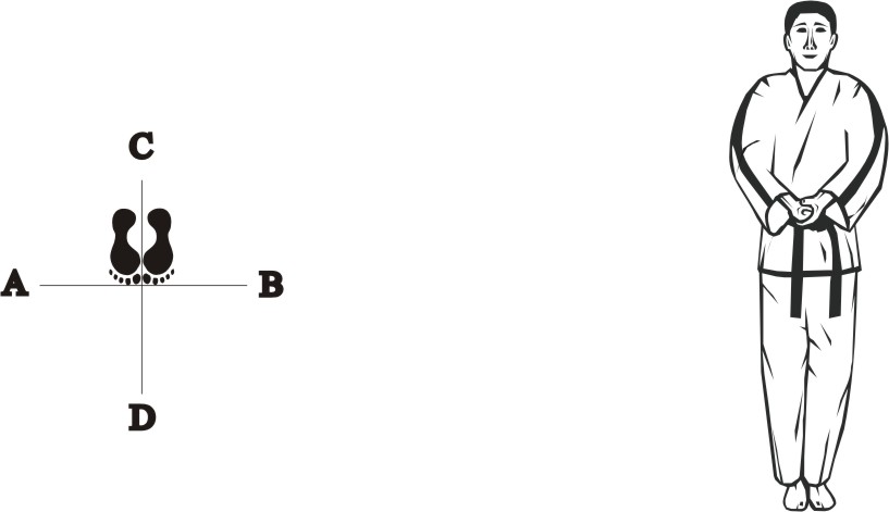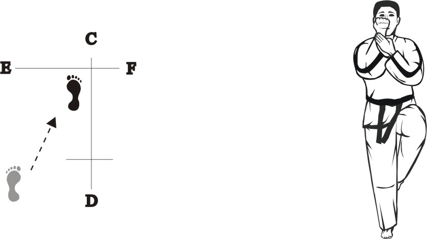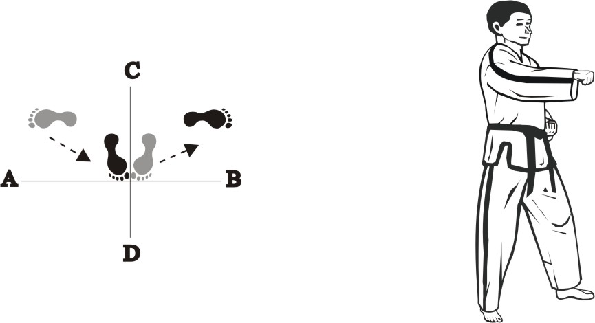 Bring the right foot next to the left foot, form a closed stance towards D and assume the ready posture Chumby-B.