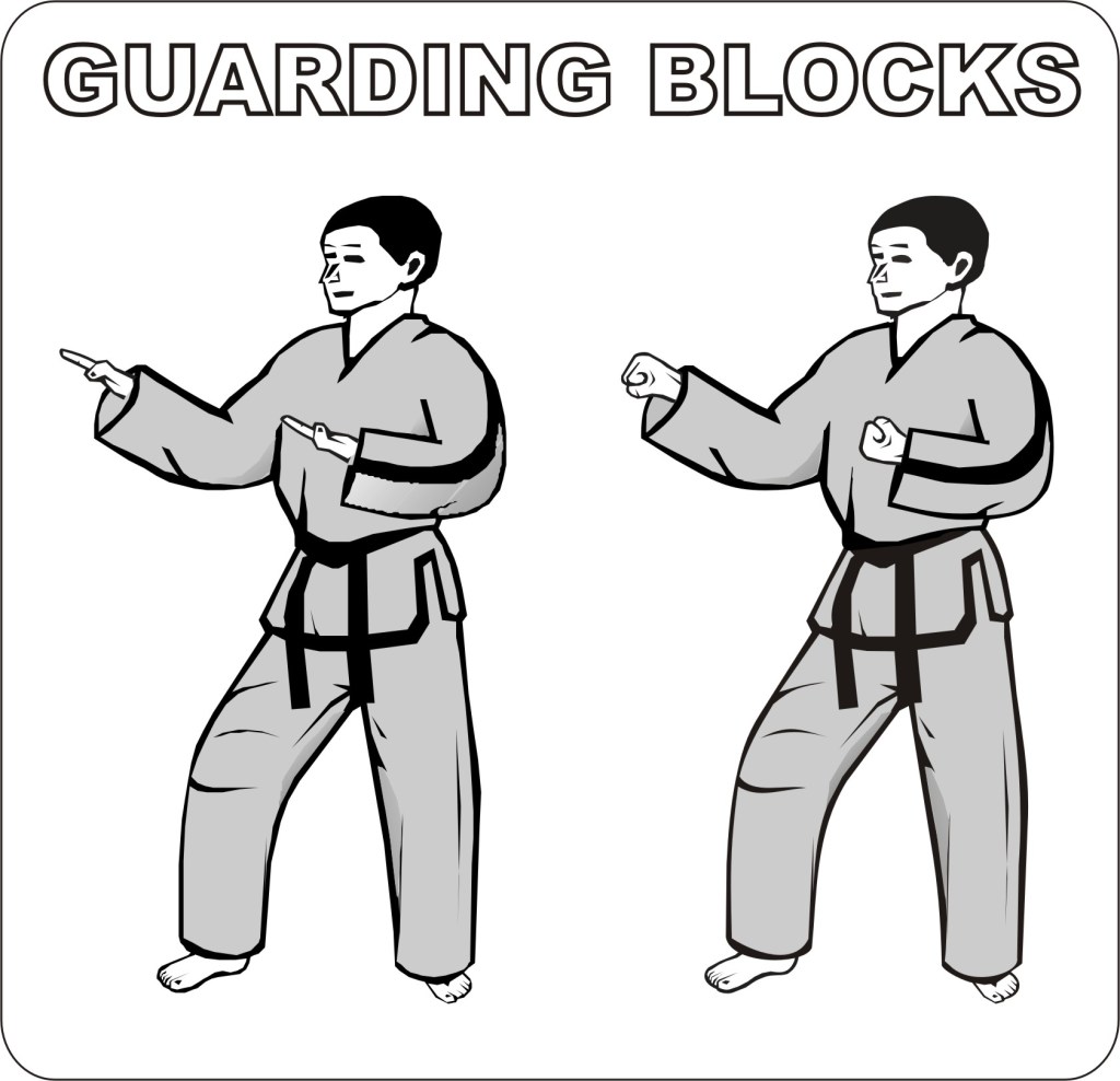 A guarding block is applied as a defense or as a warning. If in the Tuls a guarding block is followed by an attacking technique (Dan-Gun Tul), it is considered a defense. If the guarding block is the last position in a Tul (Won-Hyo Tul), it serves as a warning and the speed of the technique is slowed down. A guarding forearm block is also part of the sideward bending posture (Won-Hyo Tul); this is also intended as a warning.