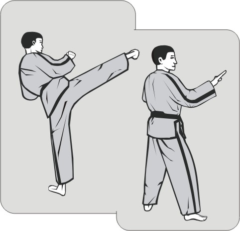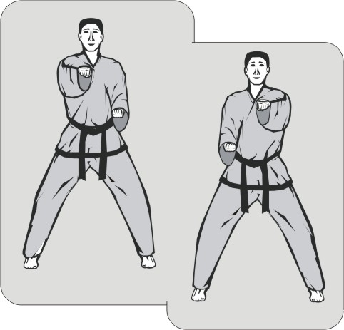 In a continuous movement, there is also a differing transition between one technique in one stance and the following technique in another. Normally, a transition between two techniques in different stances occurs at a steady pace, neither fast nor slow. To create a ‘continuous movement’, the transition is done quickly, and the second technique begins immediately thereafter. This allows both techniques to be performed in one exhalation. During the interim phase, the inhalation is held.