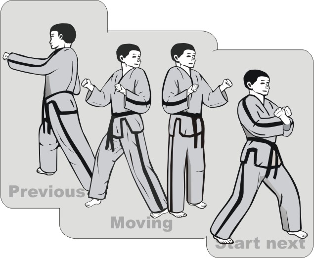In principle, a neutral-posture can be adopted in any position of the Tuls after each independent arm technique. However, positions usually follow one another quickly, and then one technique transitions directly into the next without the neutral posture in between. If there is ‘much’ time between two techniques, for example, if the transition takes time, then adopting a neutral stance makes sense.