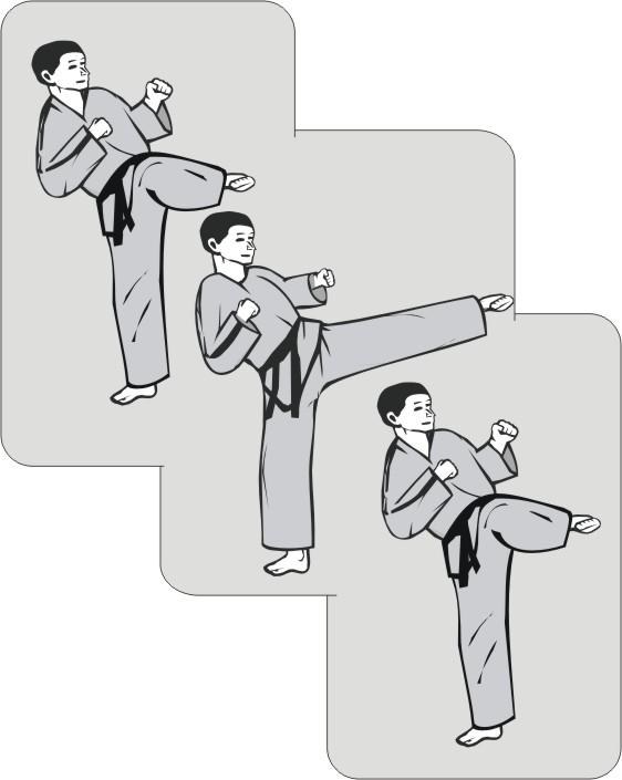 The neutral stance is applied in all foot techniques of Taekwon-do, such as the side-kick: