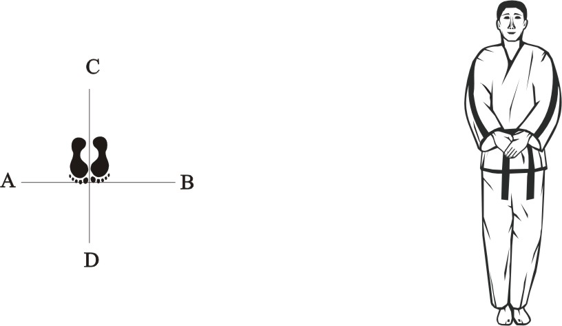 Turn right on the right foot and bring the left foot next to the right foot, form a closed stance towards D and assume the ready posture Chumby-C.