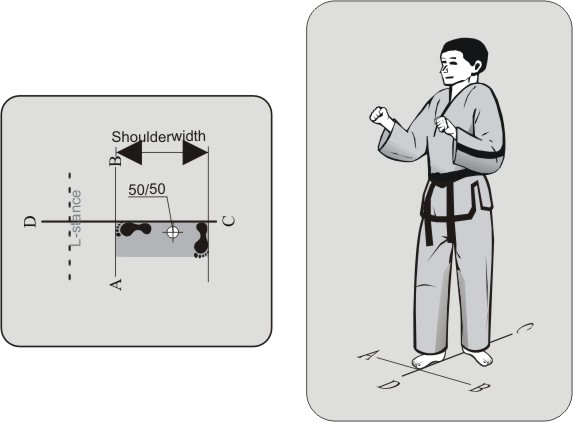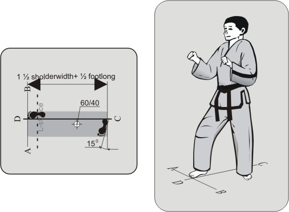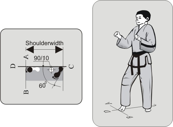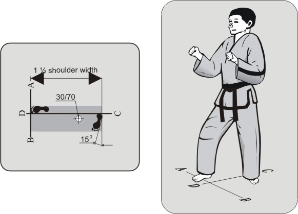The fixed stance gives the Taekwon-do practitioner the ability to bend the upper body slightly more forward (towards D) than in the L-stance.